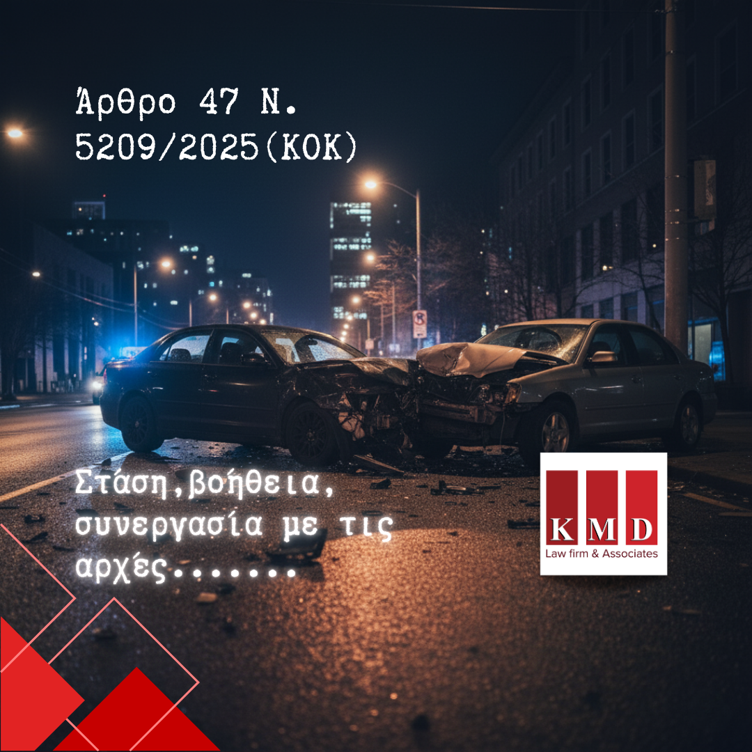 Άρθρο 47 Ν. 5209/2025: Συμπεριφορά οδηγών μετά από τροχαίο ατύχημα.